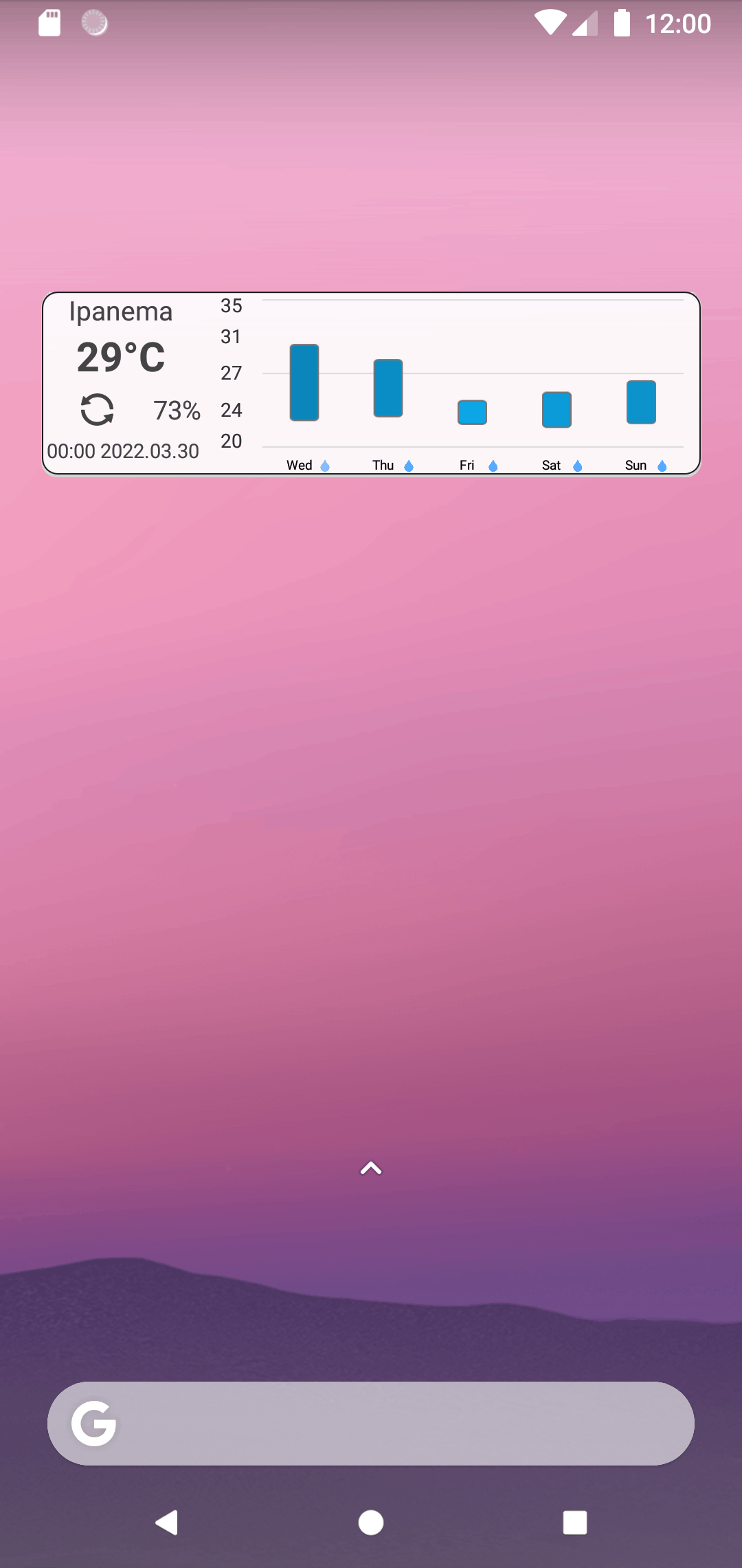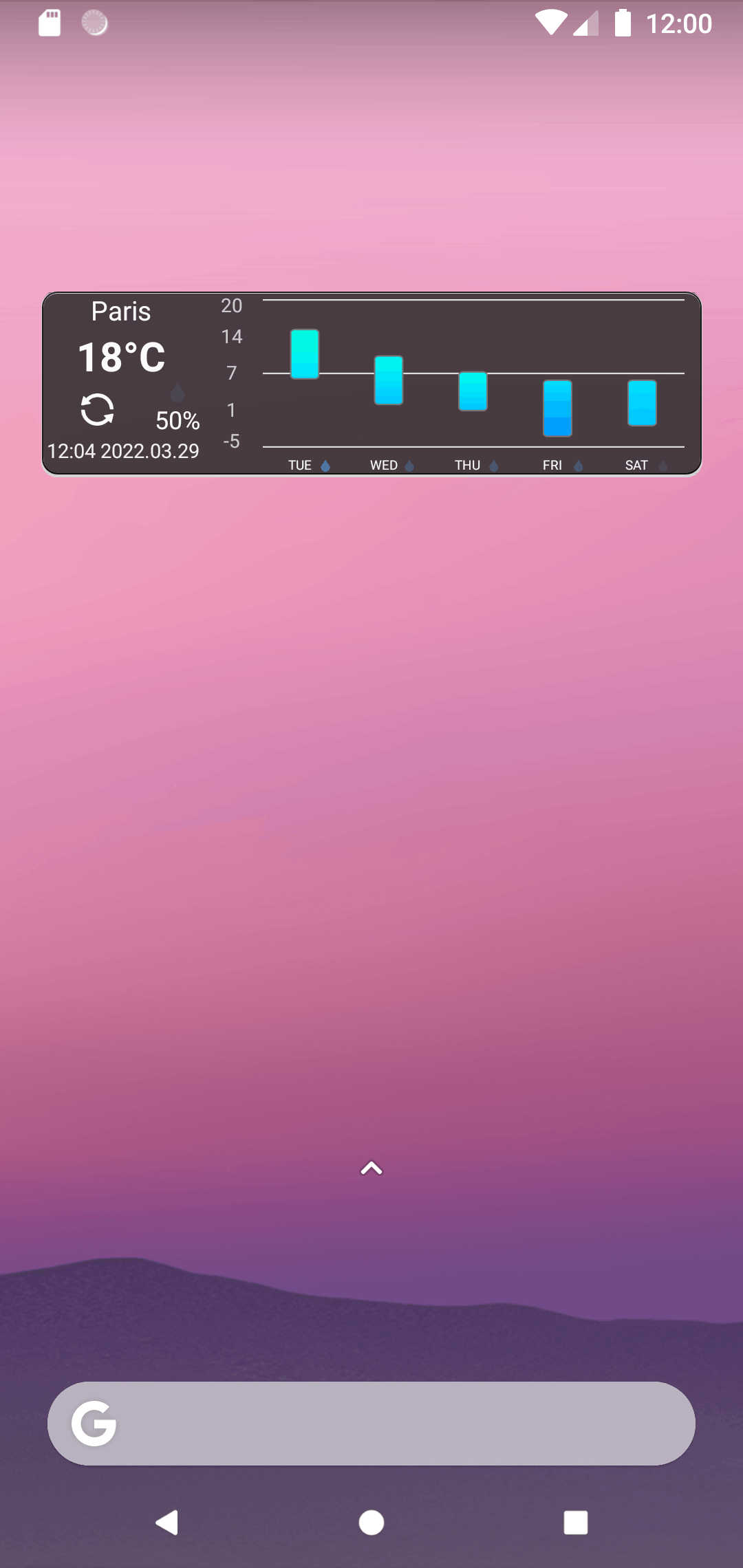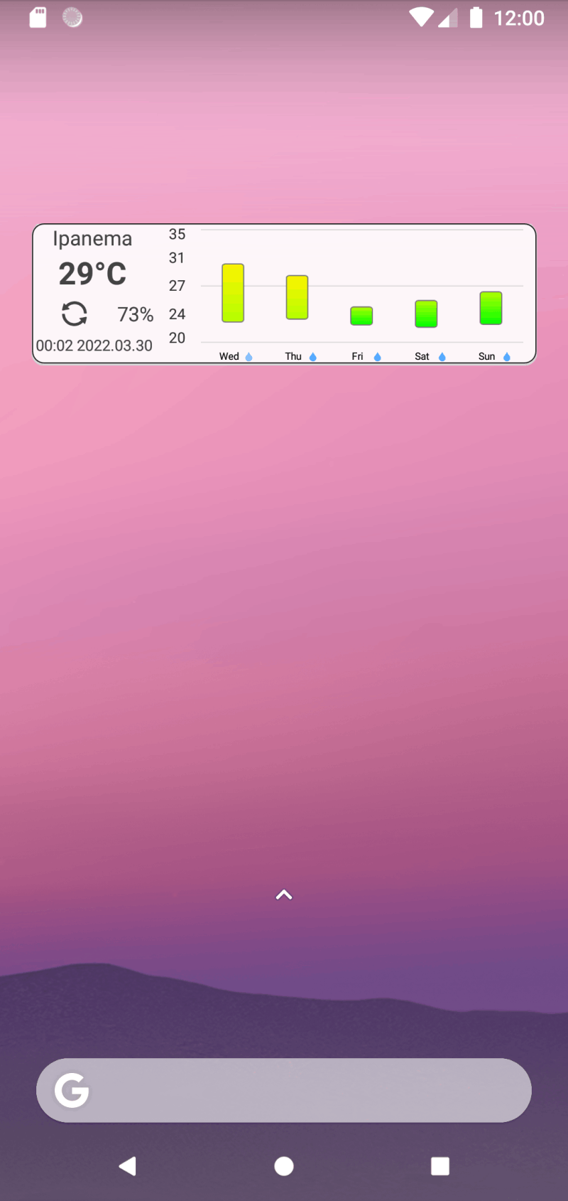 The bar chart shows the maximum and minimum temperature range trend for the next few days.