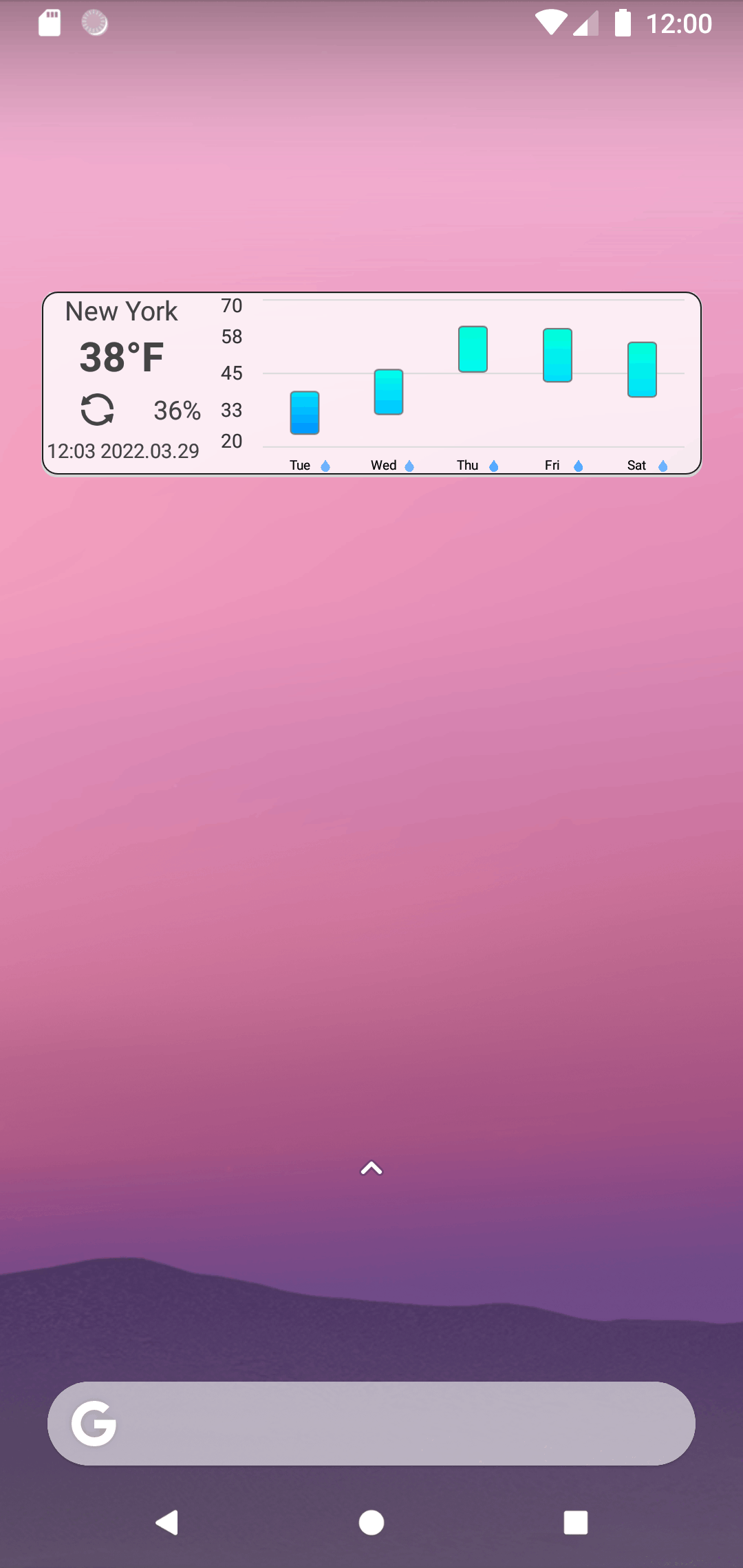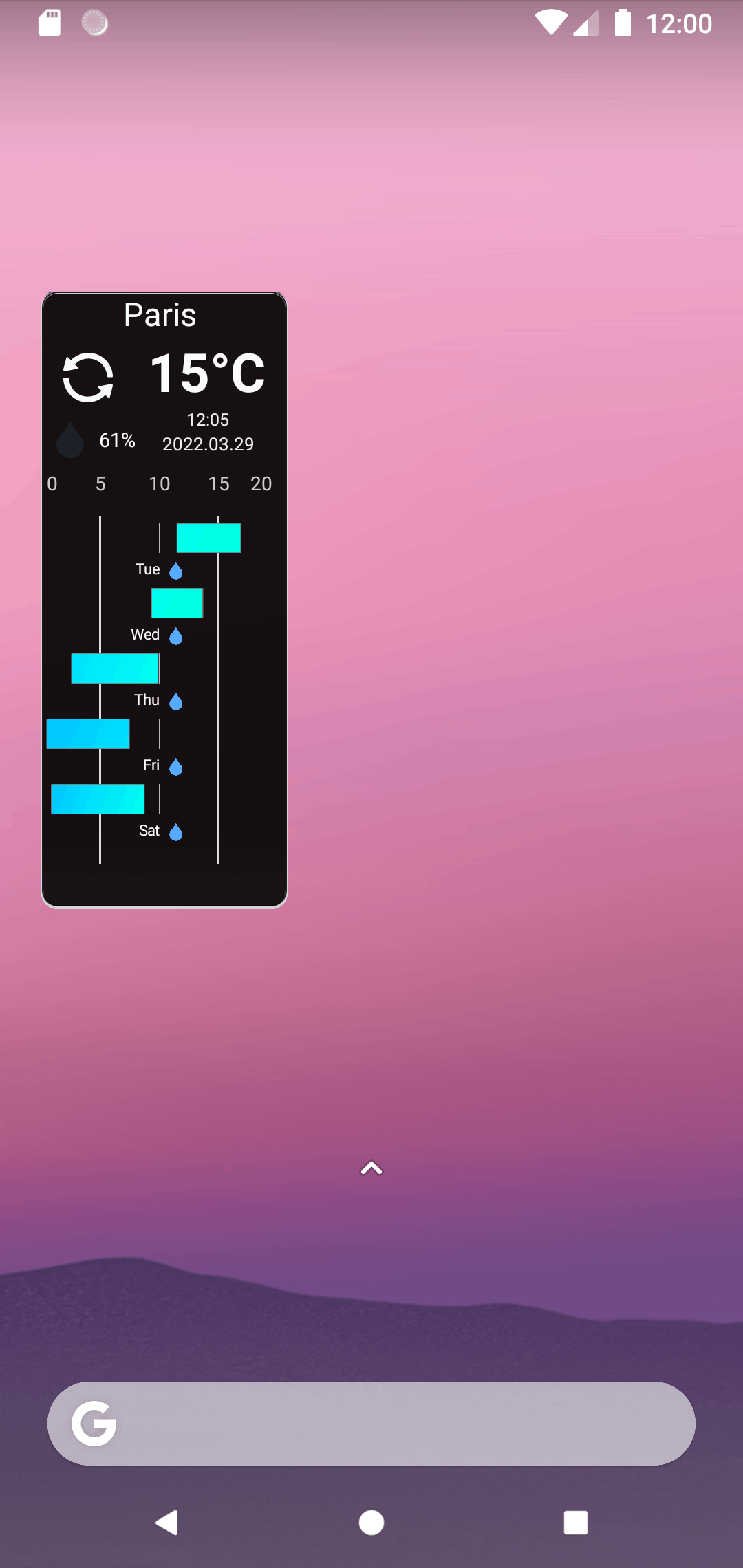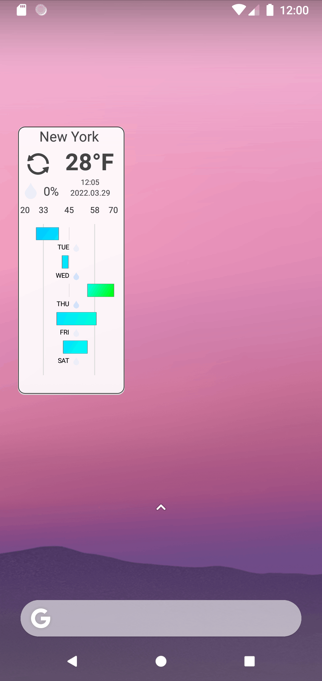 The bar chart shows the maximum and minimum temperature range trend for the next few days.