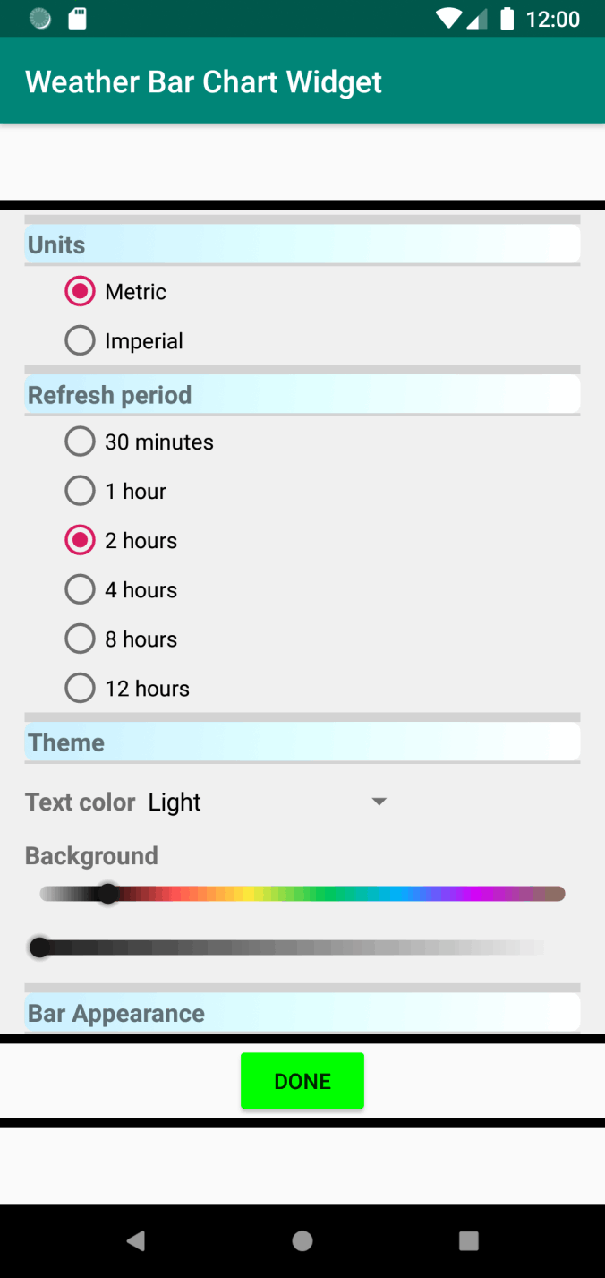 - metric or imperial units for the temperature (celcius or farenheit degrees).